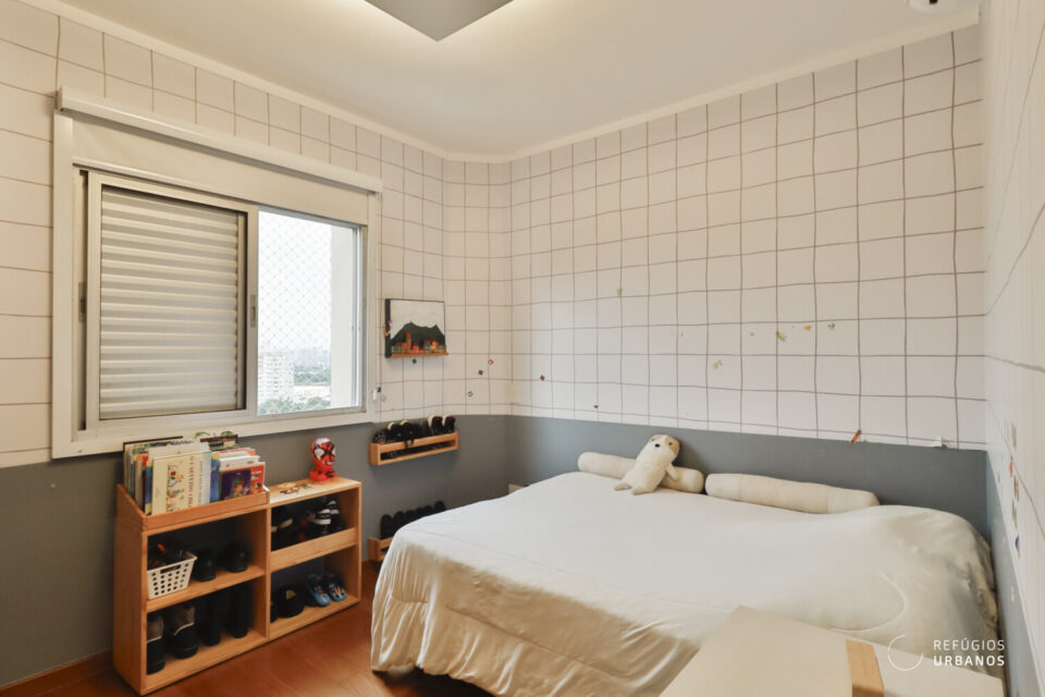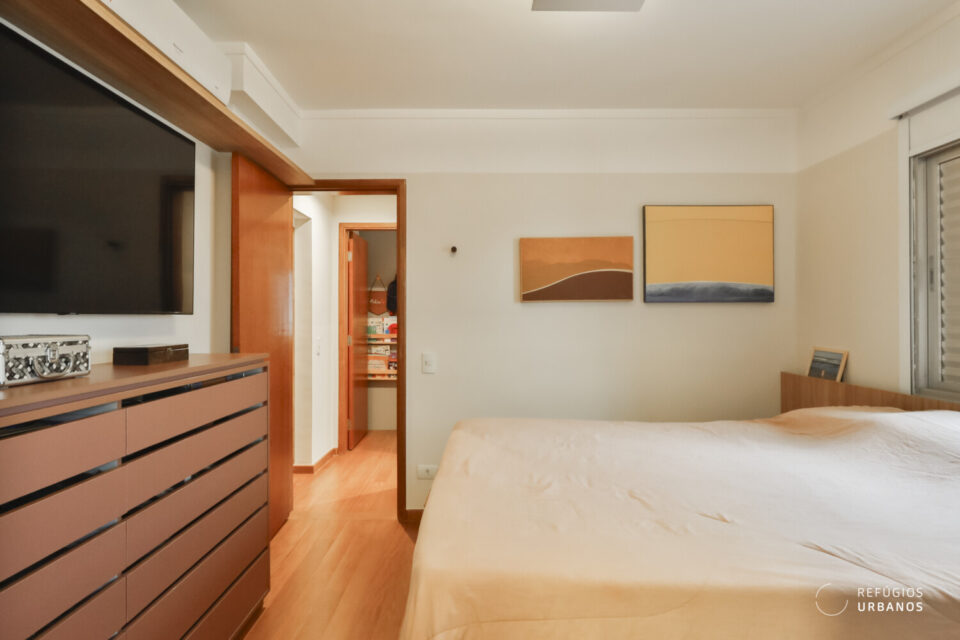 Ainda neste andar fica a área íntima organizada para garantir conforto e privacidade. Aqui temos uma suíte espaçosa com closet e mais um dormitório, além de um banheiro completo.