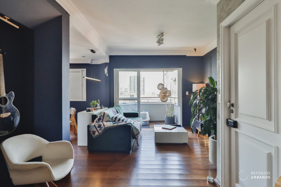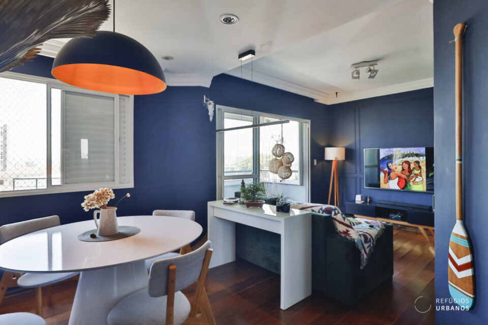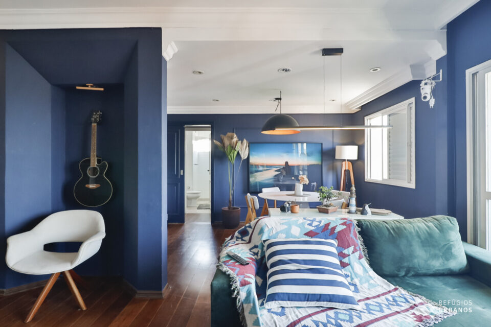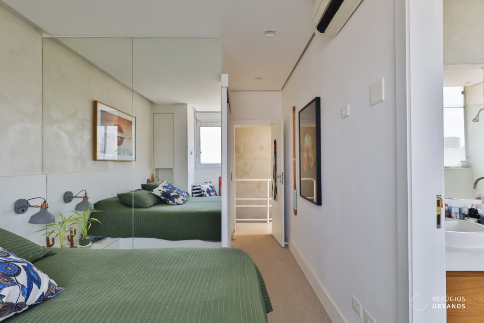 O coração do apê está no pavimento superior! Somos recebidos por uma sala de tv deliciosa e super confortável, 1 lavabo para essa área social, e uma deliciosa suíte, com closet e banheiro digno de Pinterest!