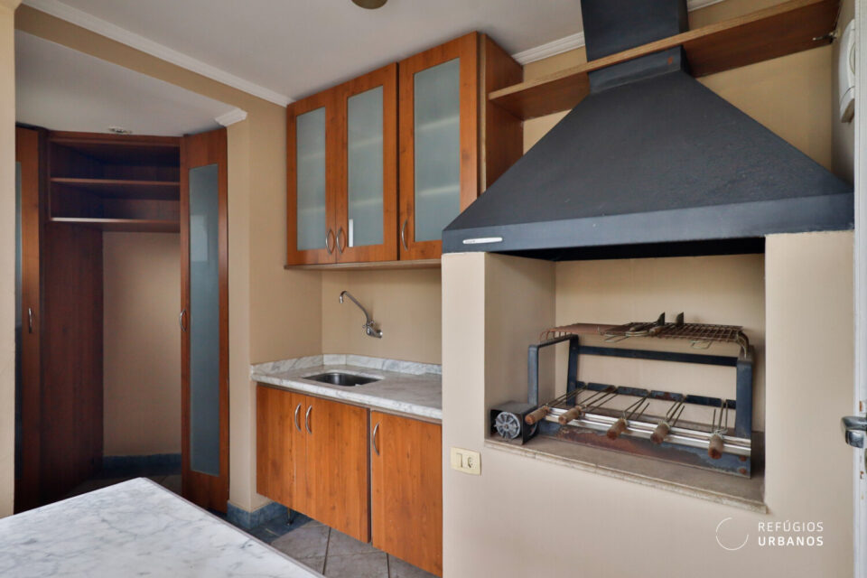 De um lado, encontramos um terraço com área gourmet e churrasqueira, ideal para encontros despretensiosos. Do outro, um quintal espaçoso, hoje usado como área de apoio, além de dependência de serviço com banheiro.
