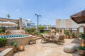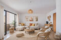 Logo ao subir, nos deparamos com uma sala ampla, com piso de madeira e portas de vidro, que se abrem para um terraço aberto que, assim como o nome do prédio, remete a um clima de praia, com direito a churrasco, sol e piscina.