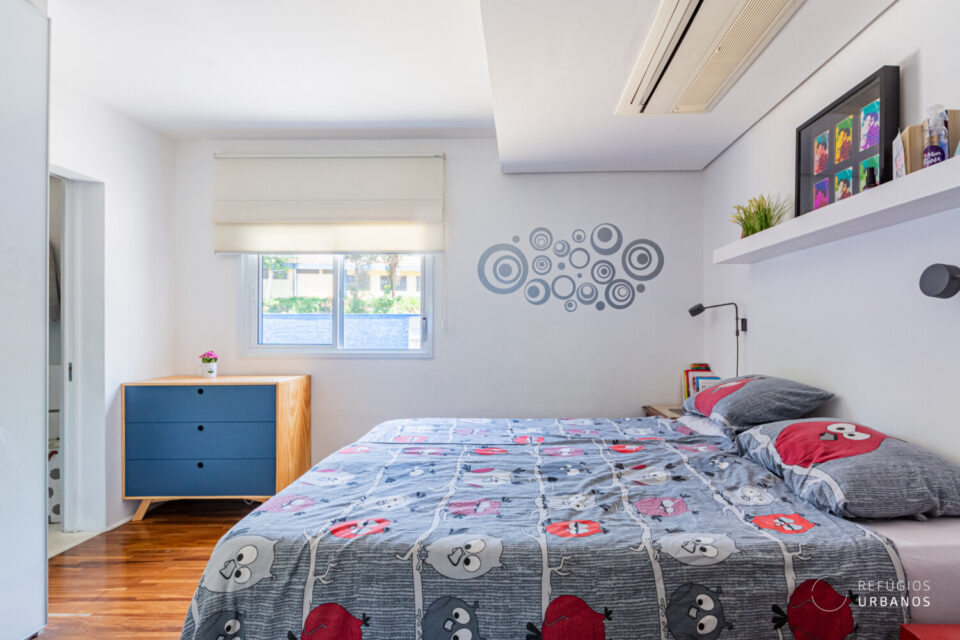 A saber, esse piso também tem uma suíte muito ampla, com ar condicionado e armários da Florense.