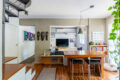 Logo ao lado, a cozinha se integra a esse ambiente com muita fluidez, além de contar com uma marcenaria impecável, planejada especialmente para atender, sem complicação, as atividades cotidianas.