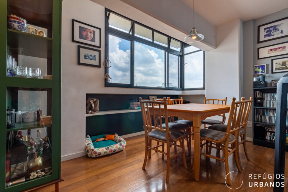 No andar da entrada, temos a sala de jantar, com um janelão e uma vista livre incrível.