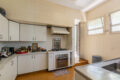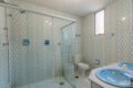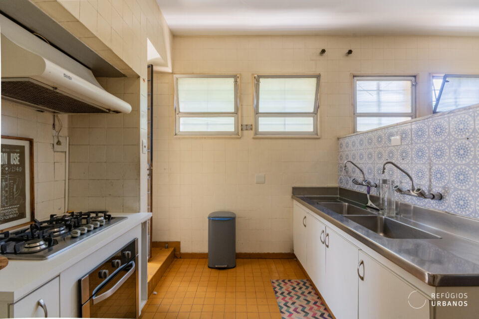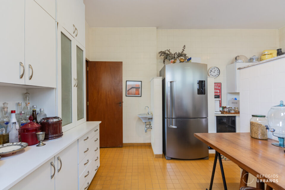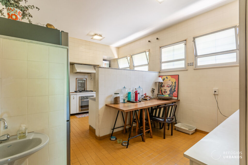 Já na parte interna, a cozinha é funcional e prática. Ela conta com uma copa, facilitando as refeições rápidas do dia a dia. Alem disso, entre a área social e os dormitórios, há um andar intermediário com um belo lavabo para as visitas.