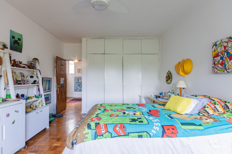A área íntima foi planejada para oferecer o máximo de descanso. Nesse sentido, você encontrará três quartos espaçosos, sendo uma suíte impecável. O destaque fica para a generosa marcenaria na área do closet, garantindo organização e estilo.