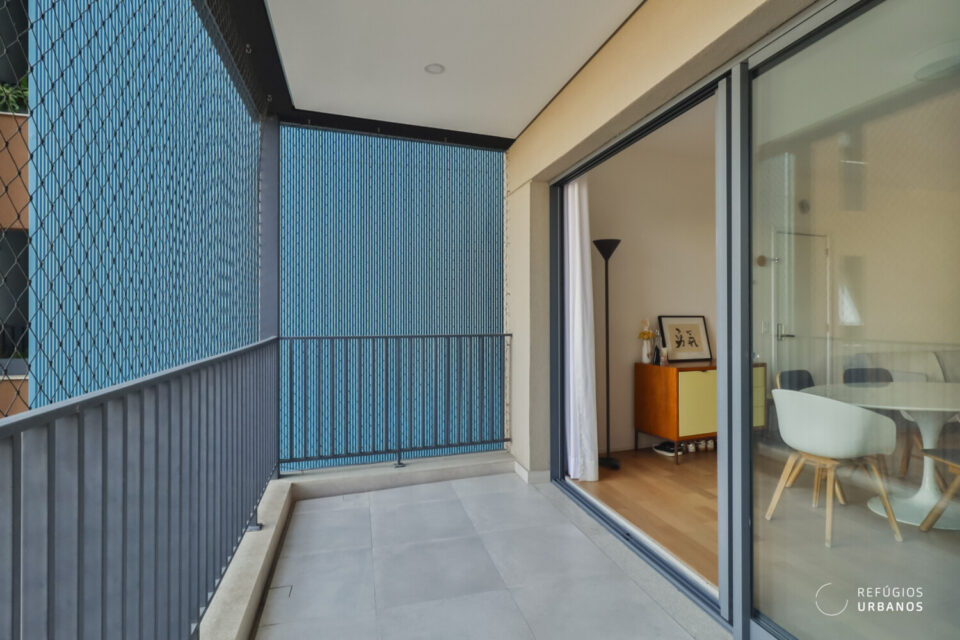 A varanda ensolarada, com ventilação cruzada, convida a desacelerar. Seja para tomar um café da manhã tranquilo ou apreciar o pôr do sol, ela se torna um espaço perfeito para relaxar.