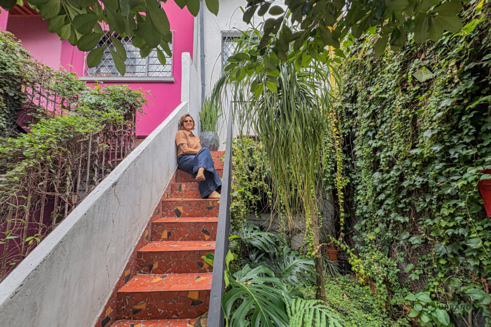 Você chega à Rua Araçatuba 651 e já sente: aqui tem personalidade. Este sobrado reformado na Vila Ipojuca tem uma fachada ao mesmo tempo charmosa e discreta, daquelas que combinam com ruas tranquilas, vizinhança boa e uma vida que se vive de verdade. A escada de caquinho sobe suave até o andar principal e, antes mesmo de entrar, você já para à esquerda. Ali, uma área aberta, verde e de céu à vista, perfeita para um café da manhã devagar ou uma conversa sem pressa.