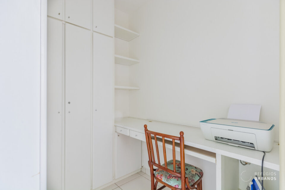 Além disso, há um office com marcenaria planejada, ideal para quem trabalha de casa ou deseja um espaço criativo. Dessa forma, o ambiente se adapta facilmente às diferentes rotinas.