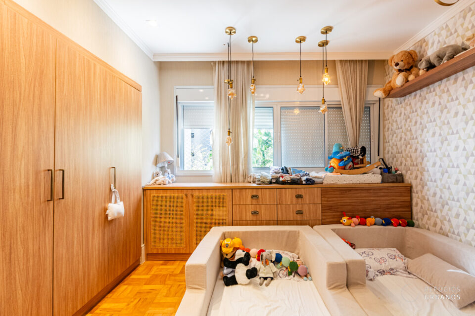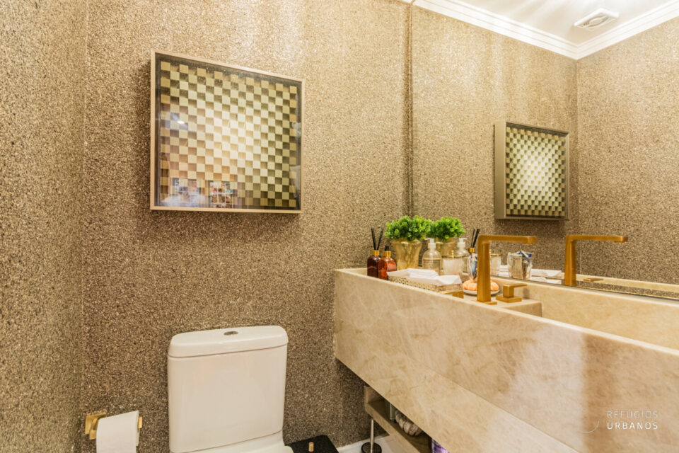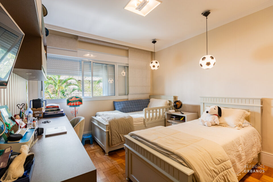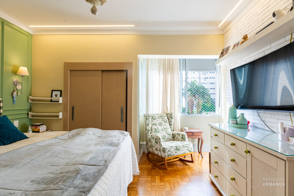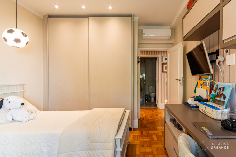 Na área íntima, o conforto se traduz em três dormitórios, sendo uma suíte com closet. Cada ambiente une funcionalidade e requinte, mantendo o estilo atemporal que atravessa tendências.
