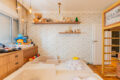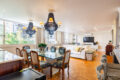 Além disso, os janelões imensos são protagonistas, pois deixam a luz entrar generosamente e criam uma conexão delicada entre interior e exterior.