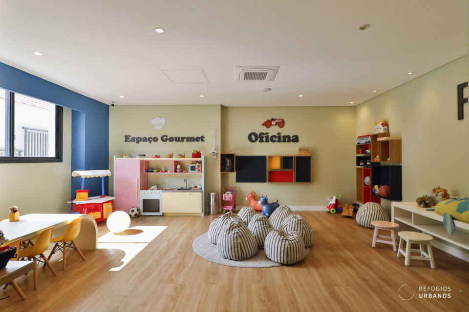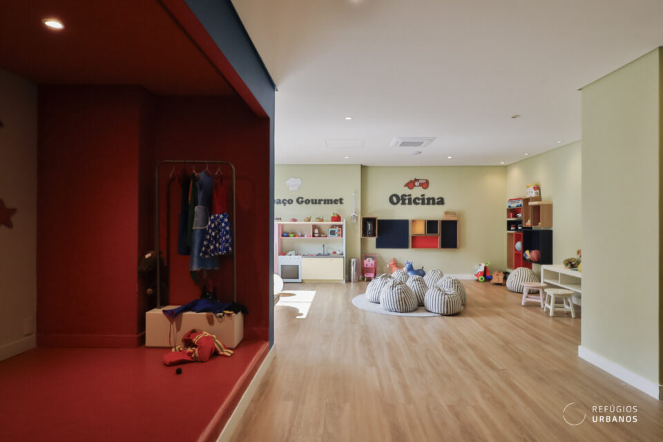 Quando falamos do prédio, o destaque vai para as áreas comuns, projetadas especialmente para famílias que gostam de aproveitar cada espaço.