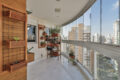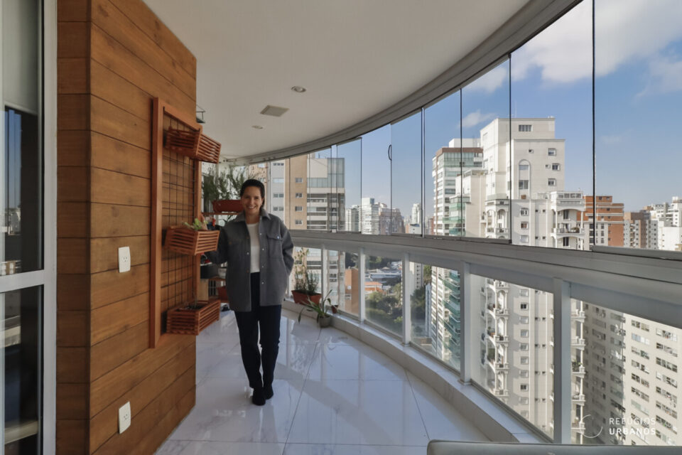 A varanda é ampla e ensolarada, já fechada por vidros.