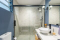 Voltando à área íntima, o corredor leva ao banheiro social, que tem ótimo tamanho e um detalhe na cerâmica no box que dá um toque de charme.