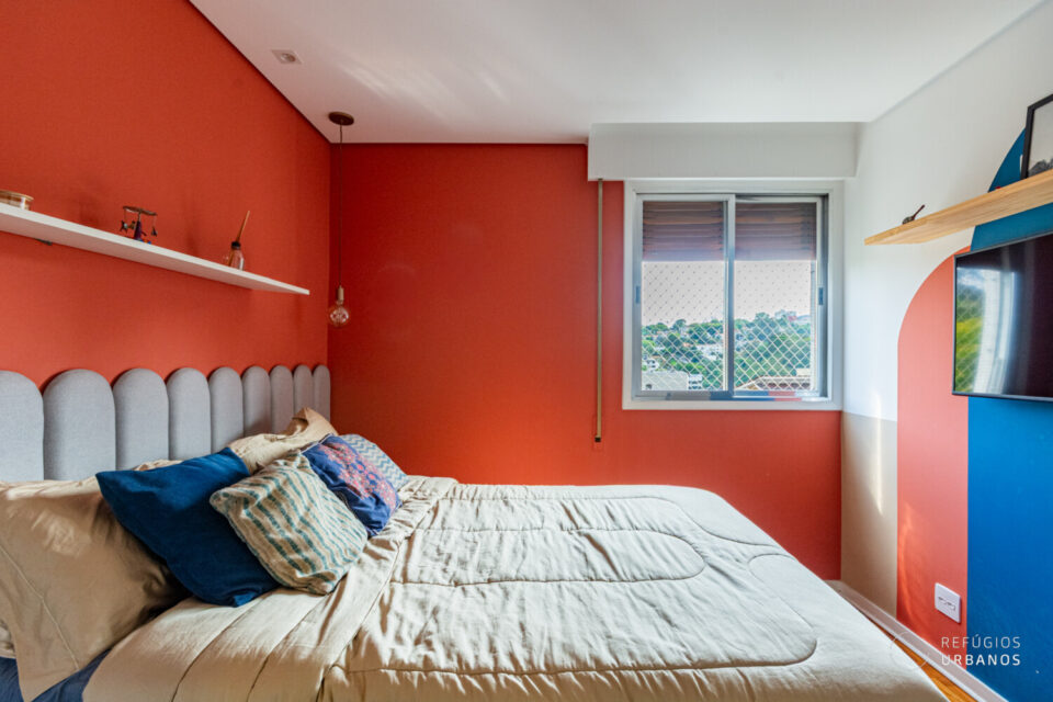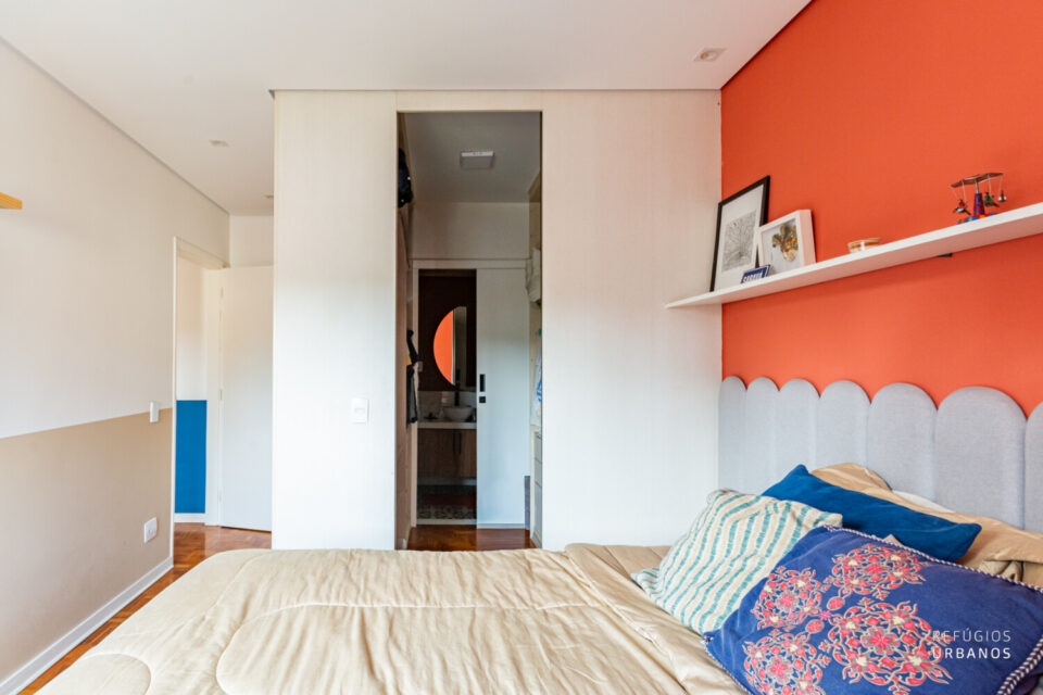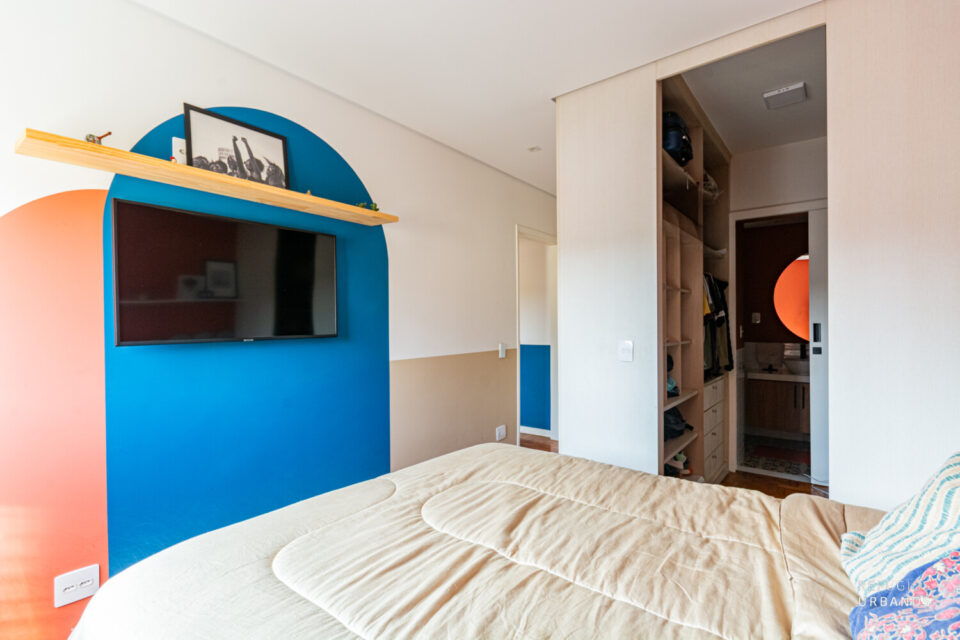 E, por fim, chegamos à suíte: colorida, aconchegante e com closet, além de um banheiro cheio de estilo.