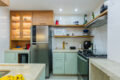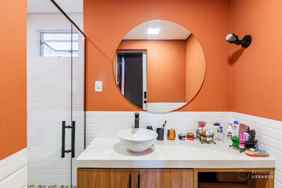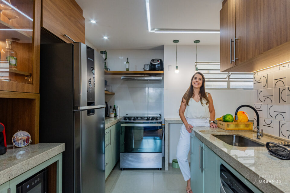 Toda a reforma foi pensada e conduzida por uma arquiteta que pensou em cada detalhe, desde a integração da iluminação inteligente até o uso de armários com sistema de fechamento automático. Além disso, as cores escolhidas refletem a essência dos atuais moradores, um casal do litoral, e trazem alegria e personalidade para os ambientes.