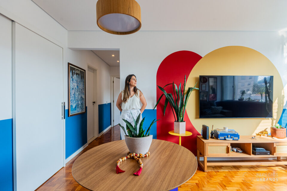 É um apartamento cheio de vida, e essa energia acolhedora já se sente logo na entrada.