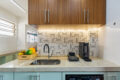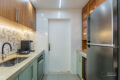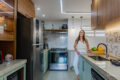 Logo ao lado da sala, está a cozinha, que também recebeu uma reforma completa. As bancadas são novas, com bastante iluminação e os armários planejados incluem lixeiras embutidas. Além disso, há máquina de lavar louça, e o melhor: todos os eletrodomésticos ficam para o novo morador, o que torna a mudança ainda mais fácil.