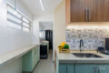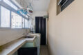 Seguindo pela direita, a área de serviço também ganhou atenção especial, com armários planejados, bancadas novas e uma bela janela que garante ventilação e praticidade no dia a dia.