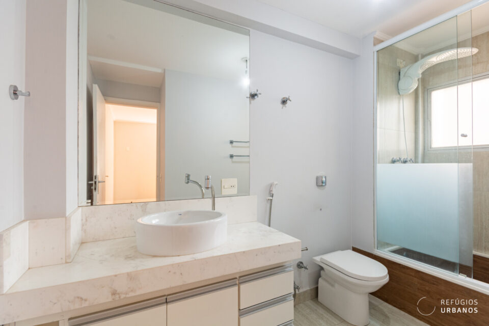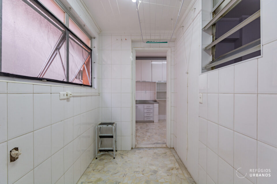 O banheiro de serviço permanece.