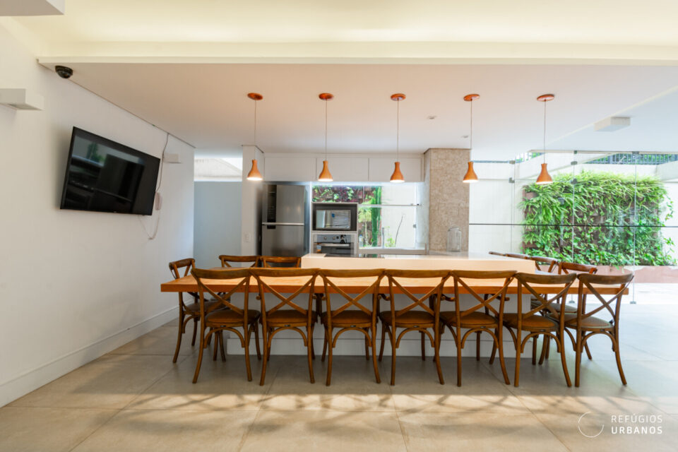 O salão de festas surpreende. E, além disso, é amplo e bonito