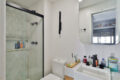- Suíte com banheiro moderno e cabeceira de design