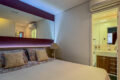 Seguindo para a área íntima, o primeiro quarto já conta com marcenaria planejada, aproveitando cada centímetro de forma inteligente e funcional. Já o banheiro completo serve tanto esse dormitório quanto as visitas. Por sua vez, a suíte é um convite ao descanso, com um closet muito bem desenhado e um projeto de iluminação que deixa tudo ainda mais acolhedor. Para completar, todos os ambientes possuem ar-condicionado instalado, garantindo conforto em qualquer estação.