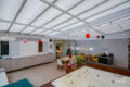 A área externa é realmente o coração da casa, um espaço pensado para relaxar, receber e celebrar. A jacuzzi ganha destaque, aberta para o sol nos dias quentes e, graças ao teto retrátil, protegida nos dias frios. Além disso, a mesa generosa integra o ambiente à churrasqueira, e um bar completo foi criado para preparar drinks e reunir amigos sem pressa. Por outro lado, para momentos mais tranquilos, um canto com sofá te espera para um bom livro ou apenas para aproveitar a brisa.