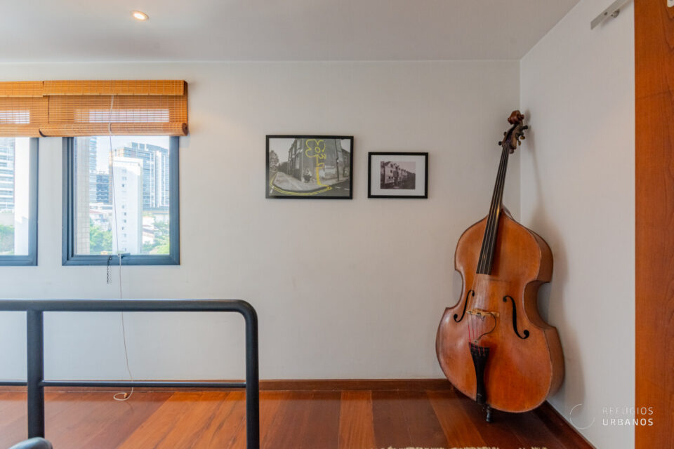 A primeira fica neste andar, com uma charmosa sacadinha, funciona bem como um home office.