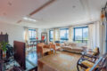A amplitude da sala generosa surpreende. De fato o ambiente é banhado por luz natural, o que consequentemente valoriza ainda mais o piso de madeira, trazendo assim uma sensação imediata de aconchego e sofisticação. Além disso, a área social conta com um lavabo estrategicamente posicionado.