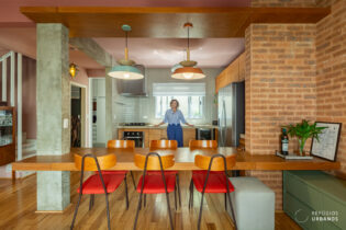 O trajeto é um charme à parte. Isto porque um corredor com janelas gostosas proporciona luz natural para o caminho, transformando então a circulação em um passeio agradável. A distribuição dos quartos é versátil: a primeira suíte fica neste andar, com uma charmosa sacadinha, e funciona bem como um home office.
