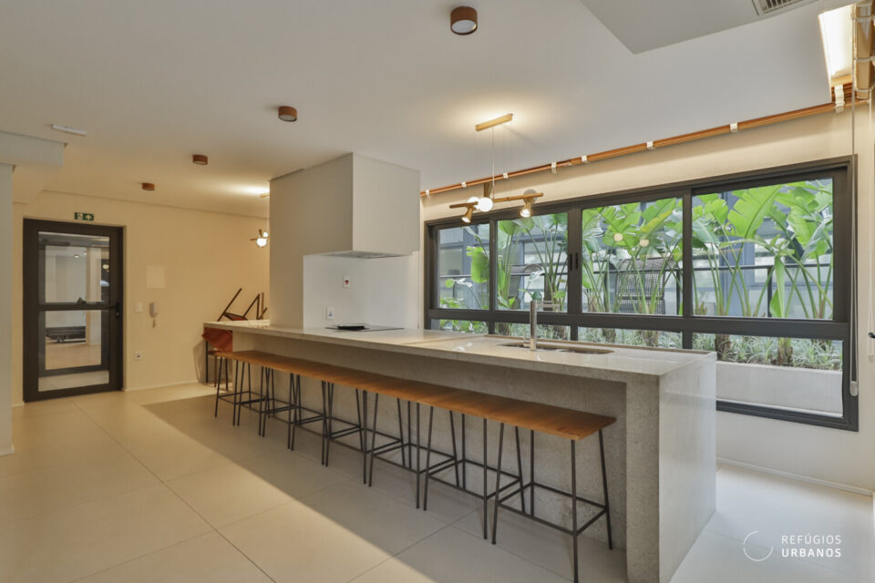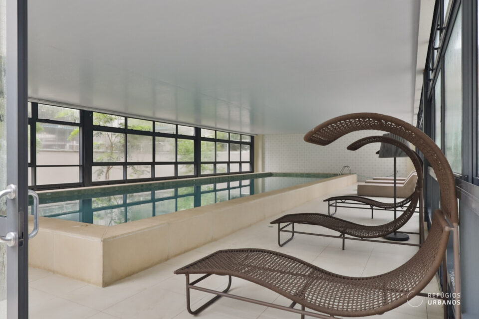 Possui office com acesso a wi-fi, academia super completa com aparelho de pilates, piscina descoberta aquecida e com hidromassagem, piscina coberta com raia, salão de festas com espaço gourmet e churrasqueira, espaço pet, lavanderia industrial e brinquedoteca. Ou seja, um verdadeiro clube.