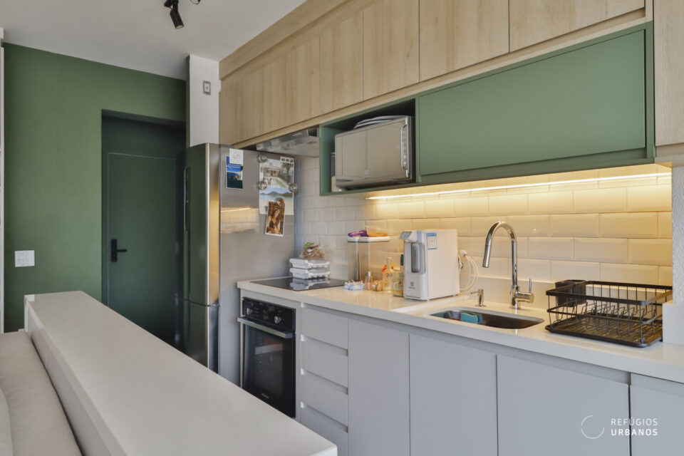 Aqui, o que não falta são armários, oferecendo, desse modo, muito espaço.