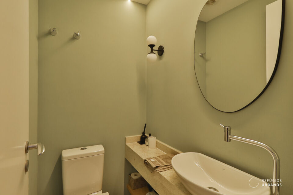 Possui uma suíte, mais um lavabo; todos os espaços desse imóvel foram super bem planejados e estão repletos de marcenaria de ótima qualidade; portanto, bem completo.