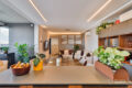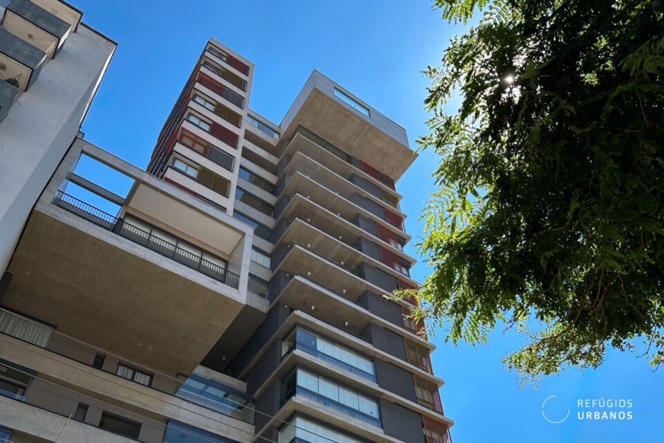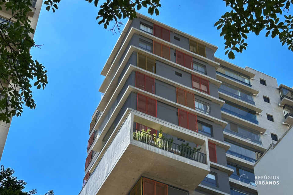 Por fim, são mais de 10 tipologias de apartamentos, de studios a 3 dormitórios — todos com brises móveis nas janelas que conferem essa aparência icônica do edifício.