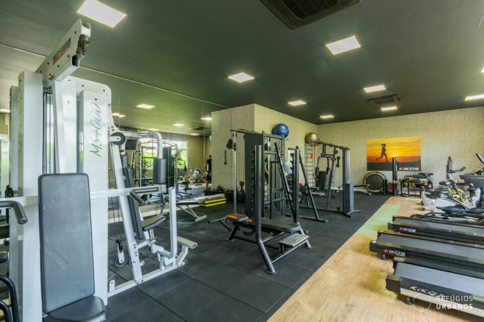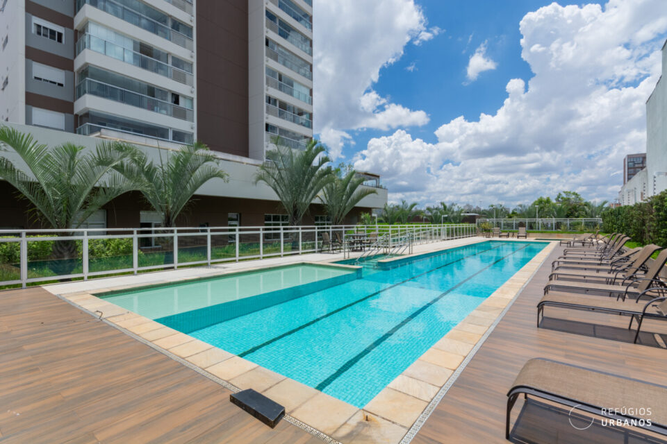 Estamos em um condomínio novo, com menos de dez anos, e que possui lazer completo para quem tem uma vida dinâmica, mas não abre mão de espaços confortáveis para se exercitar, curtir um sol com piscina, reunir familiares e amigos, praticar esportes, brincar com os pets; tudo sem sair de casa.