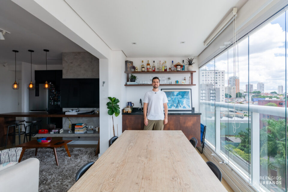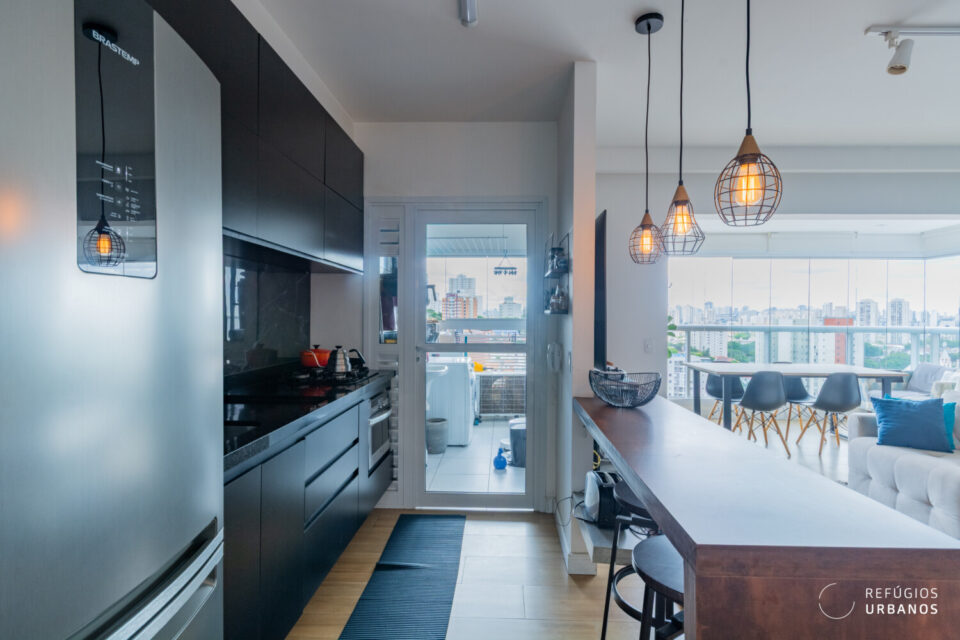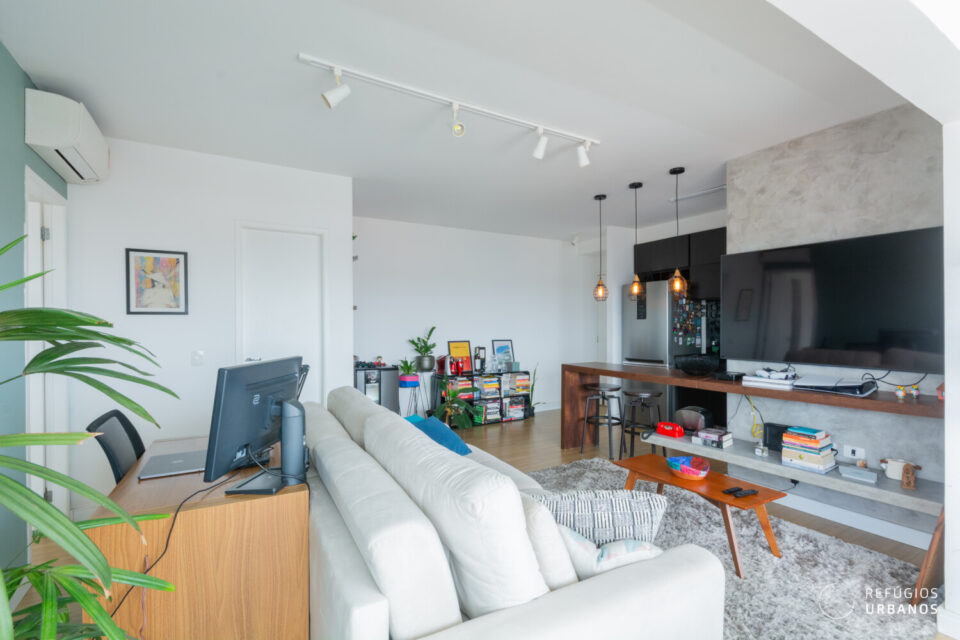 Totalmente pensado para otimizar a disposição dos ambientes, o projeto de reforma buscou integrar áreas sociais e trazer muita luminosidade natural.