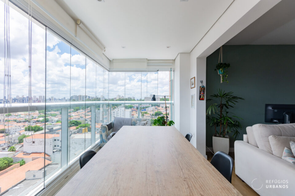 A grande estrela aqui é a varanda espaçosa, que acomoda super bem um boa mesa de jantar, e tem vista livre para a cidade, principalmente para o Parque da Independência, que fica bem pertinho.