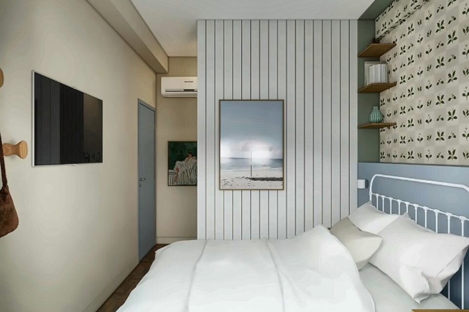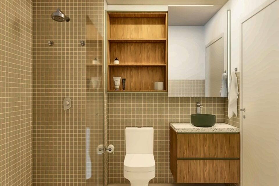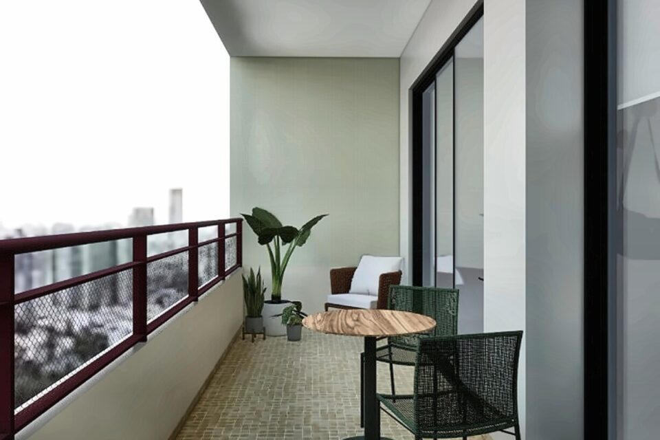 Esta unidade possui 57m² e apresenta uma configuração com uma suíte e um lavabo. Inclusive, seu layout assemelha-se ao do “apartamento conceito”, que recebeu amplos elogios do público. Ademais, a varanda diferencia o imóvel e traz um respiro extra ao morador.