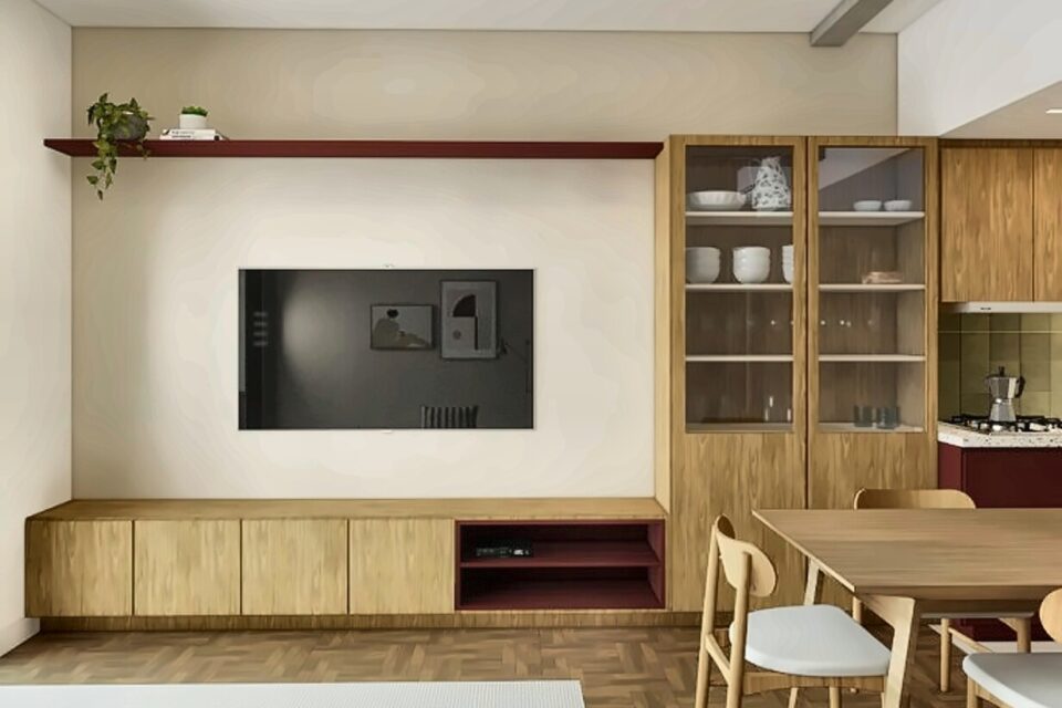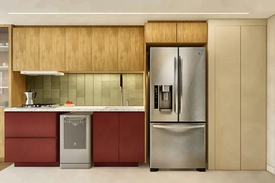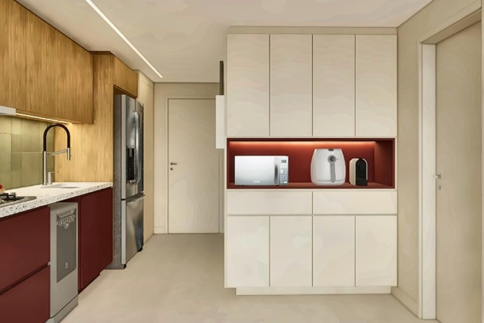 Portanto, você receberá o apartamento pronto para morar no Edificio Virginia. Nesse sentido, o projeto destaca-se pela marcenaria completa já instalada, que otimiza cada espaço com elegância. A reforma preservou o charme original da construção, enquanto incorporou, de forma sutil, toques de modernidade e praticidade. Por exemplo, a restauração do piso de taco original mantém a autenticidade do espaço. Da mesma forma, o granilite das bancadas promove a sustentabilidade, pois utiliza resíduos da própria obra do Virgínia.