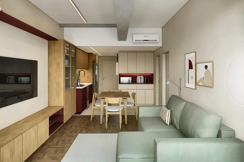 Unidade de 57m² com uma suíte, lavabo e terraço no icônico Edifício Virgínia — um primoroso retrofit modernista no coração da Consolação