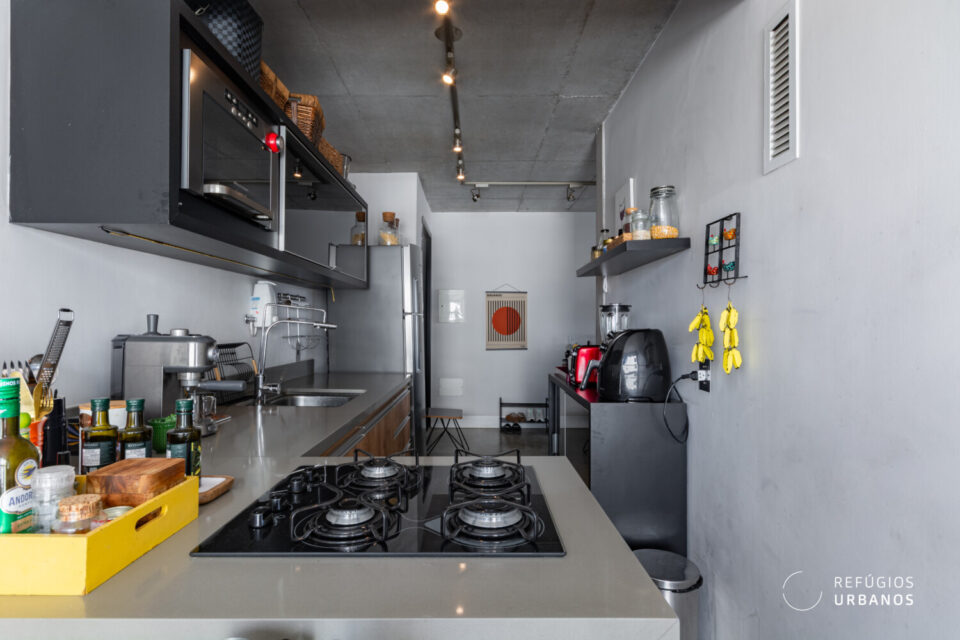 A reforma bem pensada, por sua vez, trouxe funcionalidade para a planta aproveitando com inteligência cada espaço, com uma cozinha ventilada, sala ampla e dois quartos bem distribuídos.