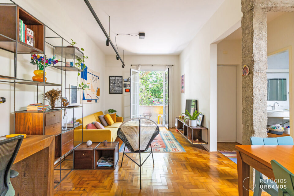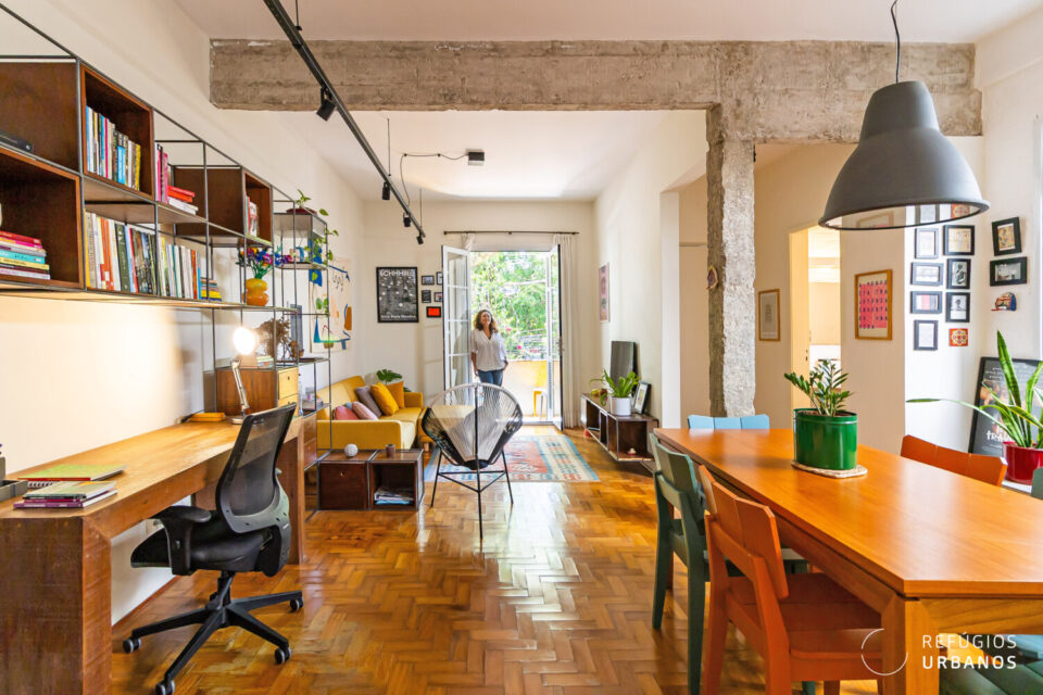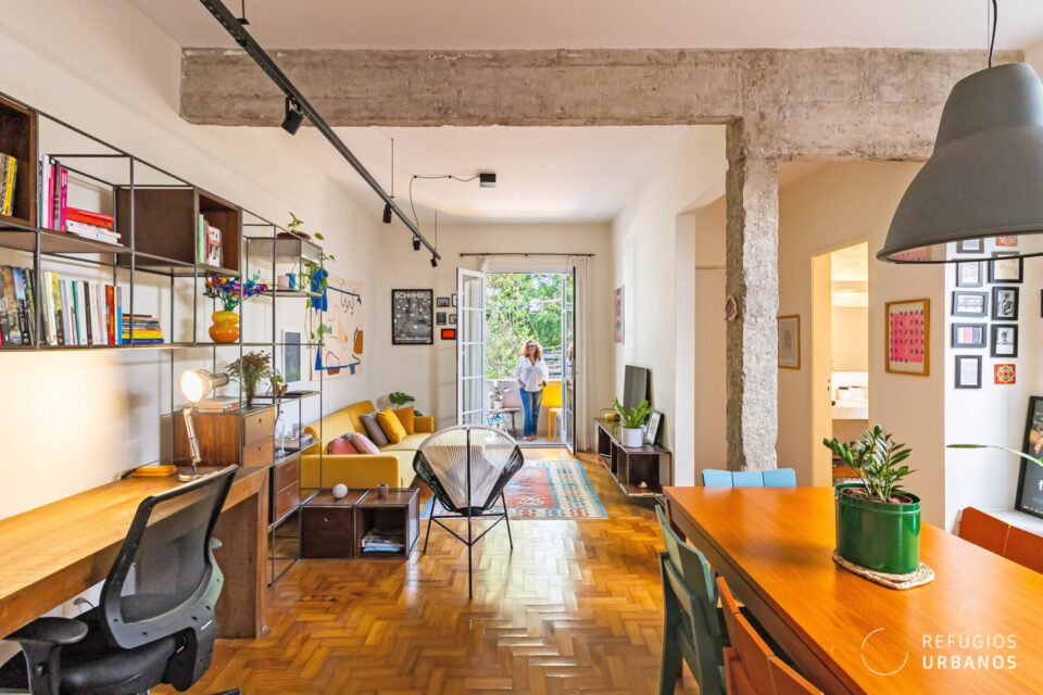 Piso de taco original mantido, janelões restaurados e as paredes de tijolinhos aparentes reveladas, garantindo assim mais personalidade ao espaço.