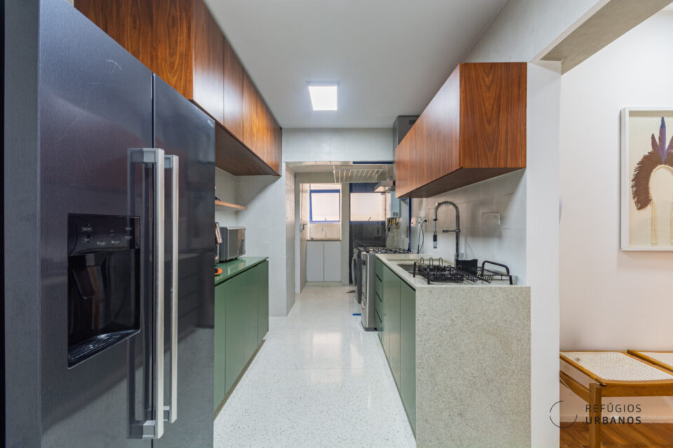 São 2 dormitórios amplos e bem distribuídos que garantem conforto e privacidade. Além disso, o apartamento conta com um espaço dedicado para home office: iluminado e ventilado naturalmente, perfeito para uma rotina mais leve e produtiva. Na sequência, o banheiro social e o lavabo entram como aliados da praticidade, tanto no dia a dia quanto ao receber visitas. E, para completar, a cozinha com móveis planejados se conecta a uma área de serviço cheia de janelas, o que traz ainda mais luz, ventilação e aquela sensação gostosa de espaço arejado.