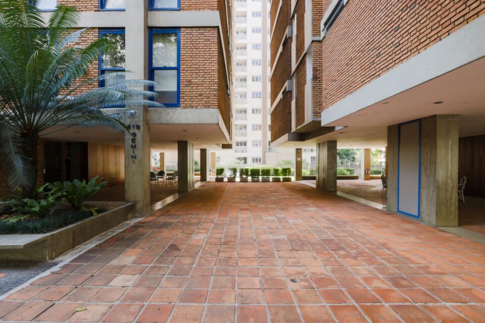Implantado em esquina e elevado por pilotis, o condomínio valoriza o espaço coletivo com áreas externas integradas, além de manter uma estética marcante. As famosas janelas azuis, por exemplo, não são só bonitas: permitem controlar luz e ventilação do jeito que você quiser.