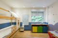 Além disso, o pé-direito é alto e a vista da sala e quartos deliciosas para a copa das árvores.