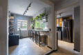 Entramos à direita visualizamos a sala de estar e jantar, à esquerda a cozinha com bancada e um espaço generoso que pode ser utilizado para escritório, ou até mesmo, sala de jantar, dessa forma, a sala de estar pode ser ampliada.