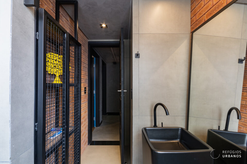 São dois quartos amplos, um deles, uma suíte. Banheiros com ventilação natural.