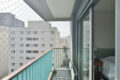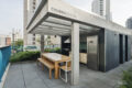 Na cobertura do embasamento, está localizada a área comum dos moradores, que se estende para um amplo terraço descoberto, localizado sobre os pavimentos dos escritórios.