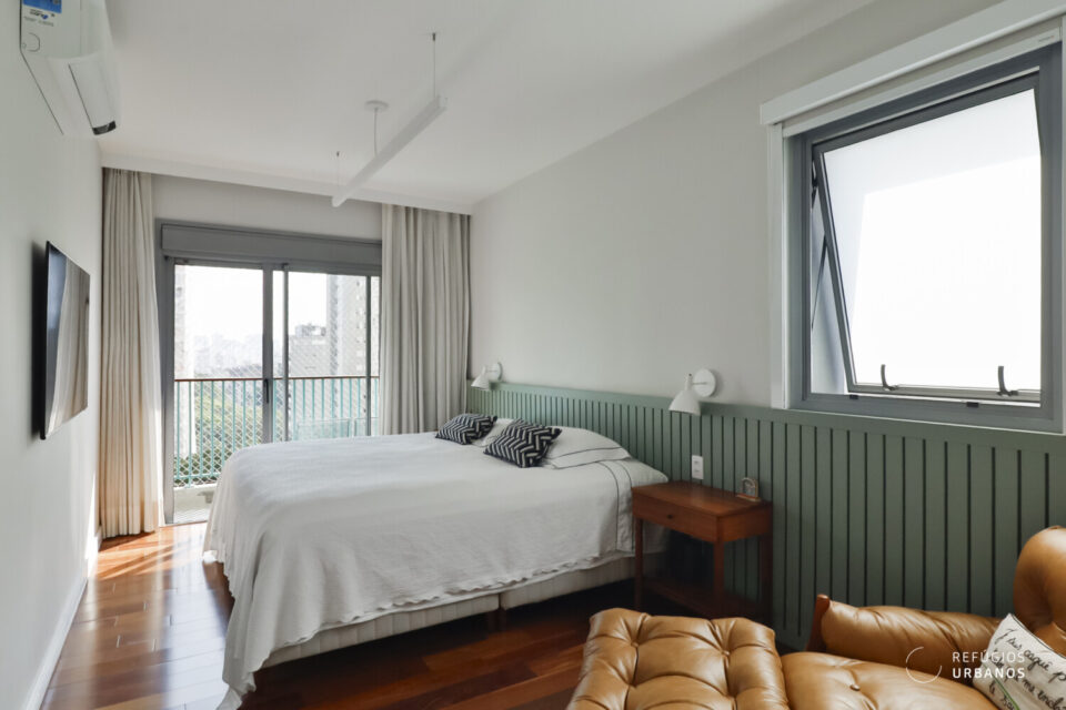 Possui três suítes com excelente marcenaria, todos bem decorados e com varanda, o que traz luz e ventilação para os ambientes. Os banheiros também com marcenaria e ótima ventilação. Ou seja, perfeito.