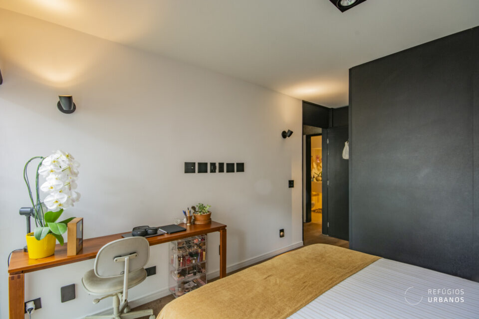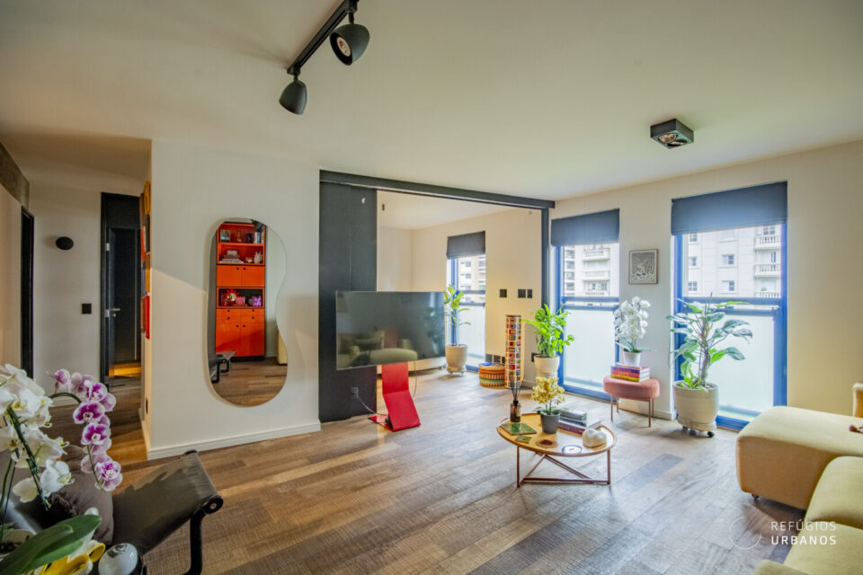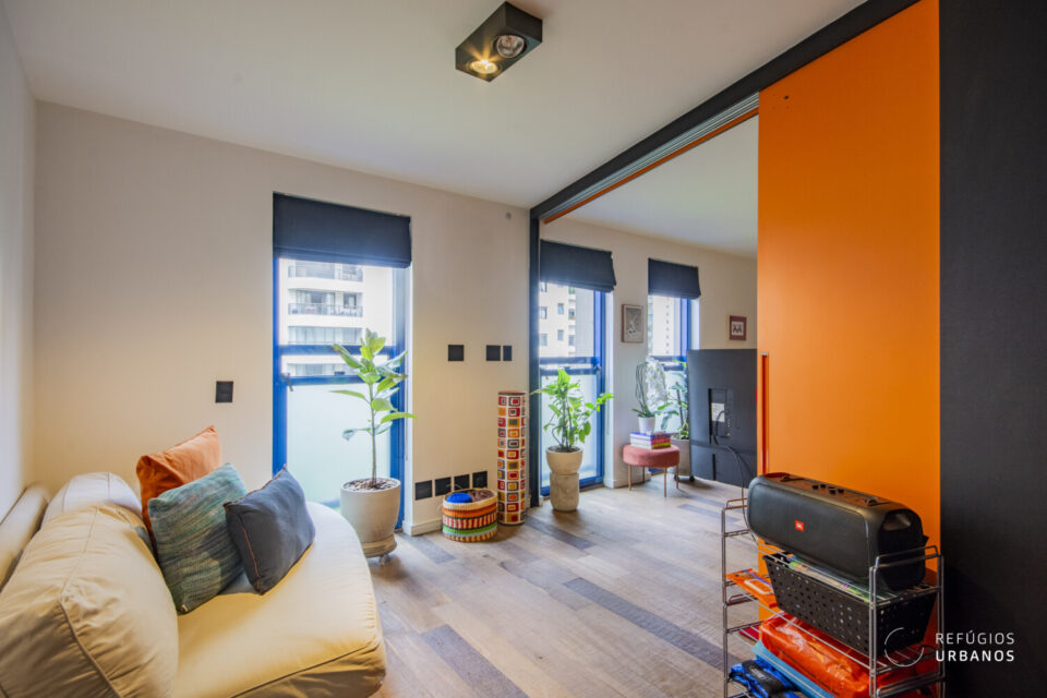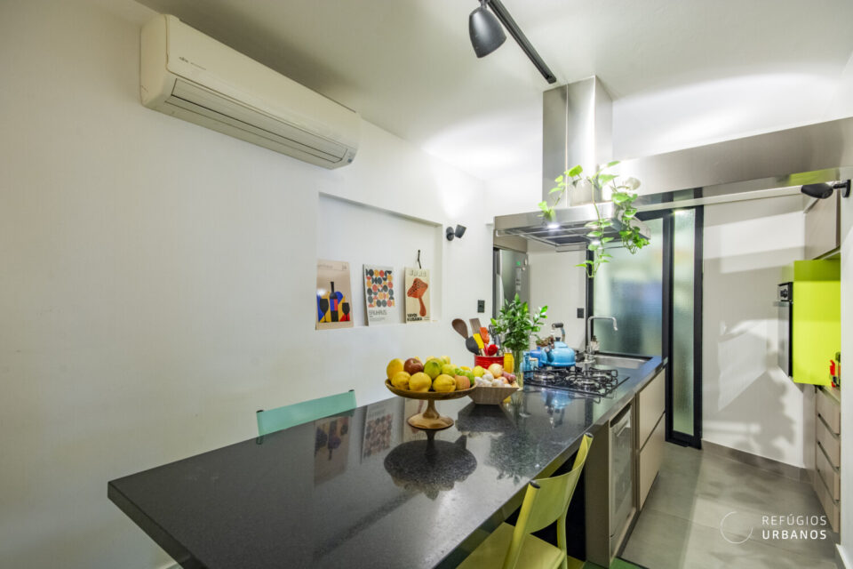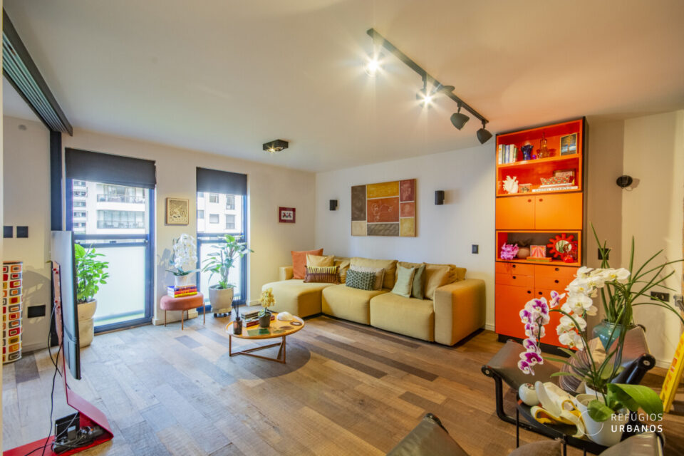 Reforma feita para o jovem proprietário que trouxe os elementos originais da arquitetura do edifício para dentro do apartamento, com os tijolos aparentes e as vigas de cimento.  Configuração:  uma suíte com closet, segundo quarto com painel deslizante de madeira, permitindo sua interação com a sala de estar. Segundo banheiro social com box super discreto, que também faz a função de lavabo. Cozinha com ilha e integrada. Apartamento ainda conta com armários, piso de madeira e acabamentos impecáveis.